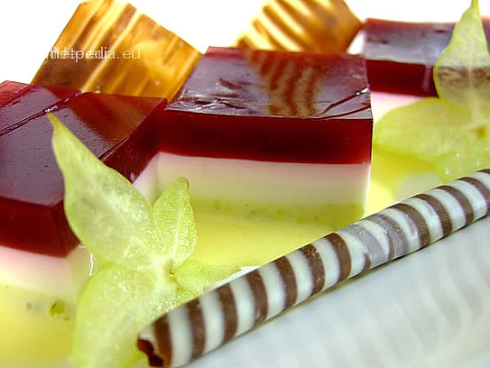 - Gekochte Vanillesahne mit Pistazien und Rotweingelee