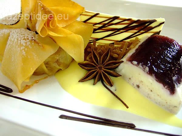 Ziehteigtasche mit Quittenfüllung auf Sternanissauce an Kastanienparfait
