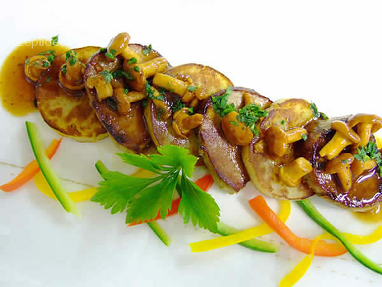 Gröstel von Schweinefilet mit Kartoffeln und Pfifferlingssauce