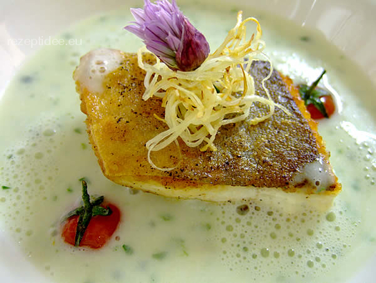 Kräutercremesuppe mit gebratenem Saiblingsfilet